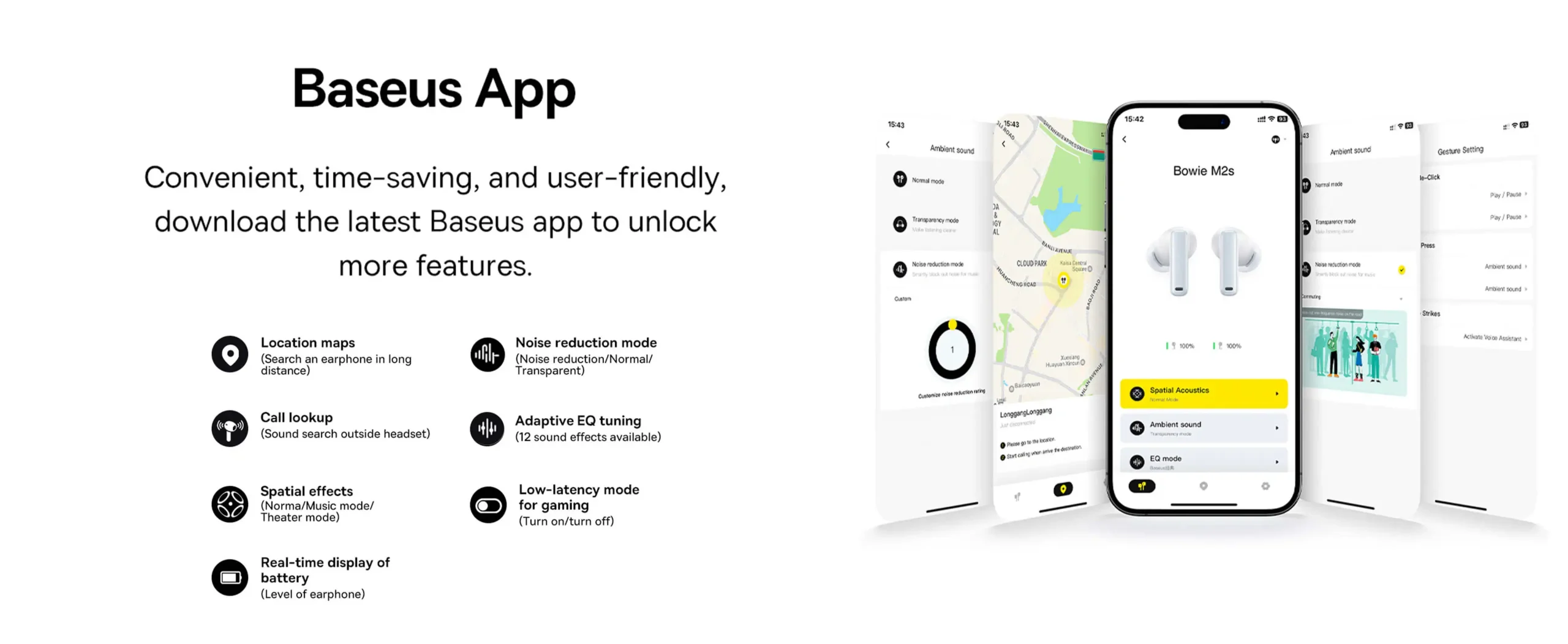 تماس، فعالیتهای داخل و بیرون از خانه فراهم میکند. کنترل لمسی، اپلیکیشن Baseus و صدای فضایی سهبعدی استفاده از آن را راحتتر و