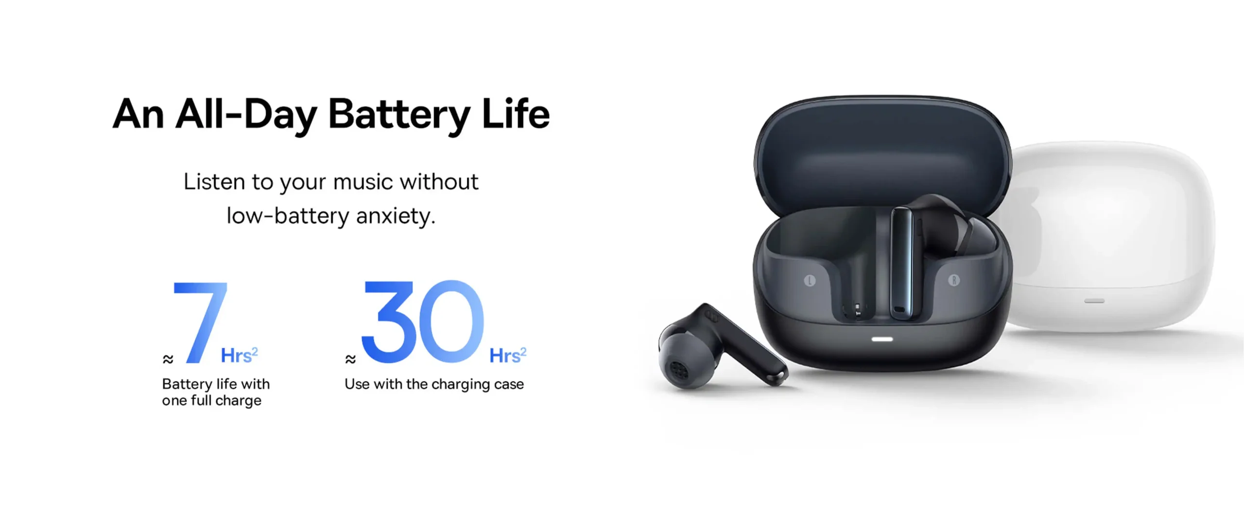 فراهم میکند. عملکرد باتری بسته به شدت استفاده و فعال بودن ANC