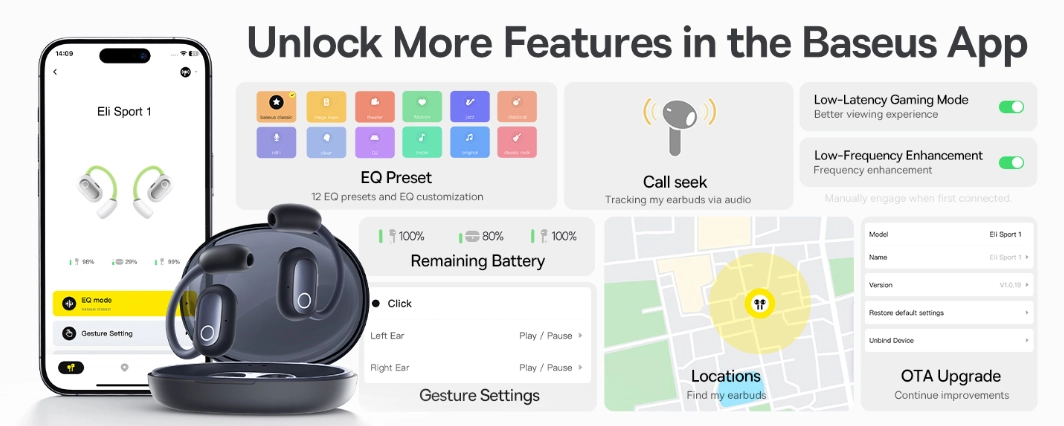 اپلیکیشن Baseus امکان مدیریت سطح باتری، EQ و تنظیمات تکمیلی را