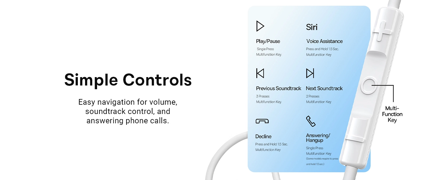 دکمه چندعملکردی امکان کنترل موسیقی، جابجایی بین ترکها، مدیریت