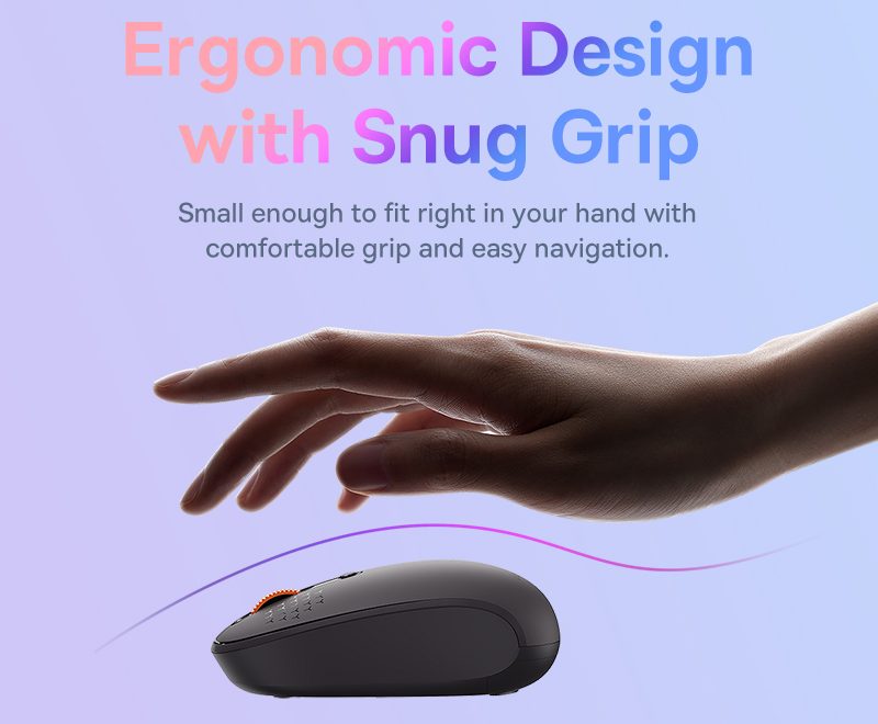 Baseus F01A با خطوط طراحی ساده و بدنهای خوشفرم، بهگونهای طراحی شده که در استفاده طولانیمدت، کمترین فشار را به مچ دست و انگشتان وارد کند. سطح مات و ضدتعریق آن، از لغزش دست جلوگیری کرده و تجربهای نرم و دقیق در کار با ماوس ایجاد میکند. ابعاد مناسب آن (۱۰۰.۳۵ × ۵۸.۱ × ۳۸.۵ میلیمتر) باعث میشود هم برای افراد راستدست و هم چپدست مناسب باشد.