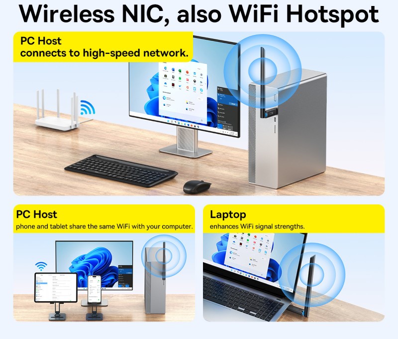 • کاربرد: ارتقاء اتصال وای‌فای در کامپیوتر، لپ‌تاپ و اشتراک‌گذاری اینترنت به‌صورت Hotspot
