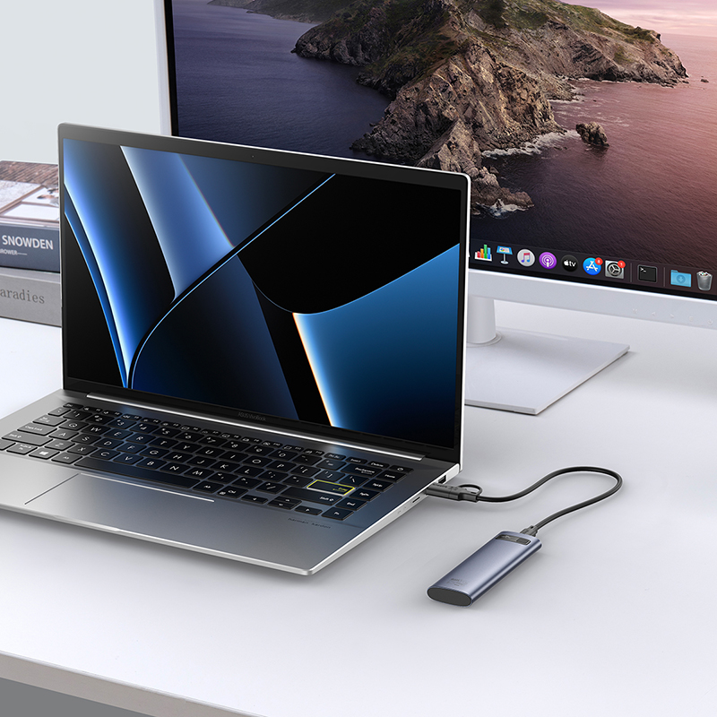 بیسوس در این محصول از آلیاژ آلومینیوم فشرده و با کیفیت بالا استفاده کرده است. این انتخاب نهتنها به زیبایی ظاهری و حس حرفهای محصول افزوده، بلکه به خنکسازی مؤثر درایو نیز کمک میکند. با توجه به افزایش دمای SSD هنگام انتقال اطلاعات سنگین، استفاده از این بدنه فلزی بهعنوان یک هیتسینک طبیعی نقش مهمی در جلوگیری از افت عملکرد و افزایش طول عمر حافظه دارد.