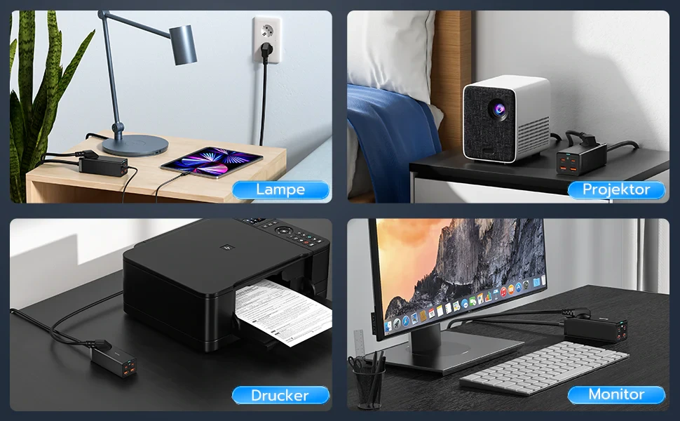 مانند چراغ رومیزی، تصفیههوا، مرطوبکننده، تیغ برقی یا شارژر لپتاپ را