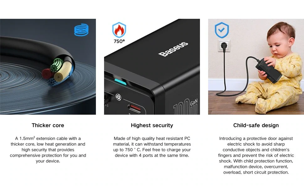 | نام محصول | Baseus GaN3 Pro Desktop Powerstrip AC+2U+2C 100W EU |