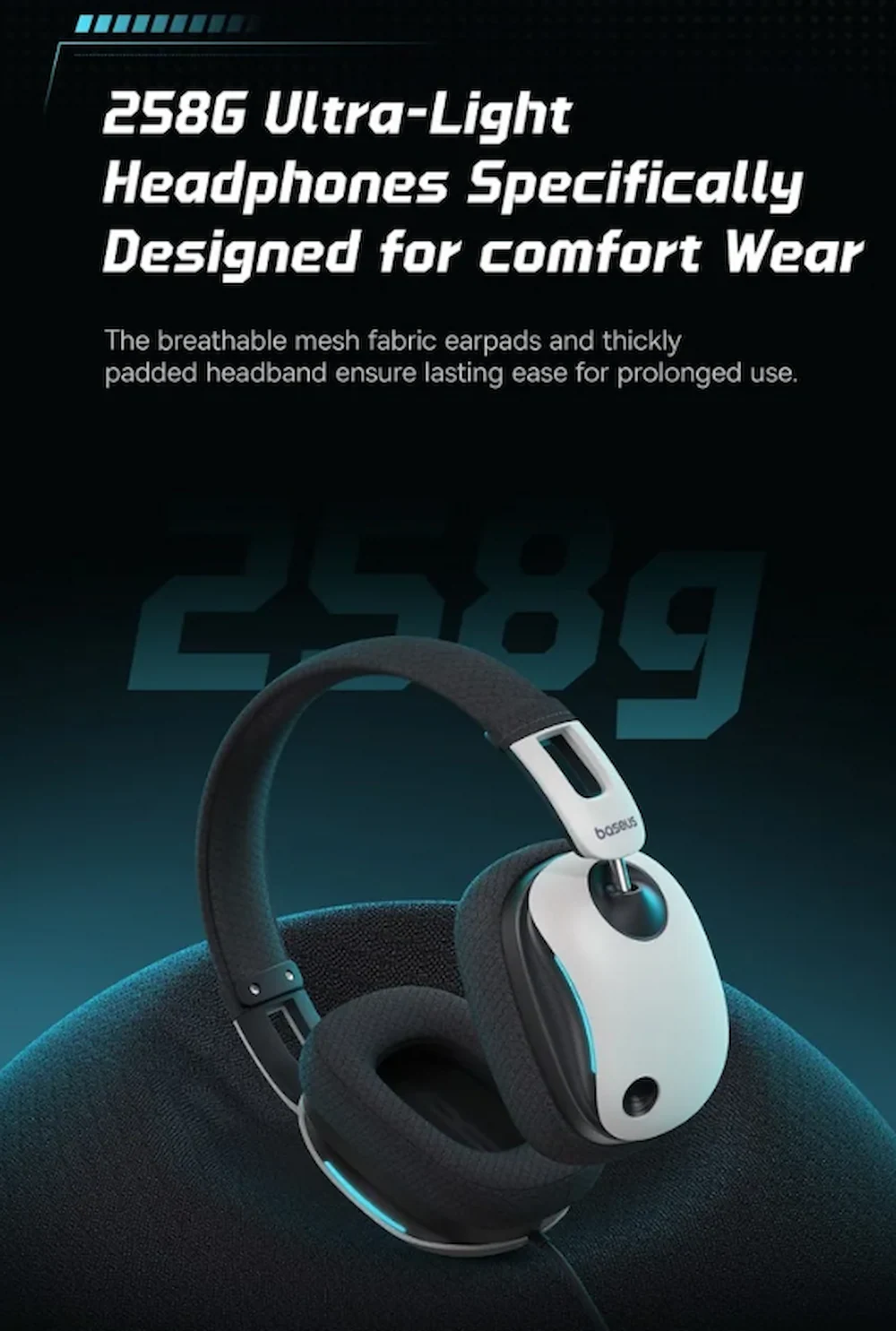 وزن حدود 258 گرمی هدست، فشار روی سر را در استفاده طولانیمدت کاهش