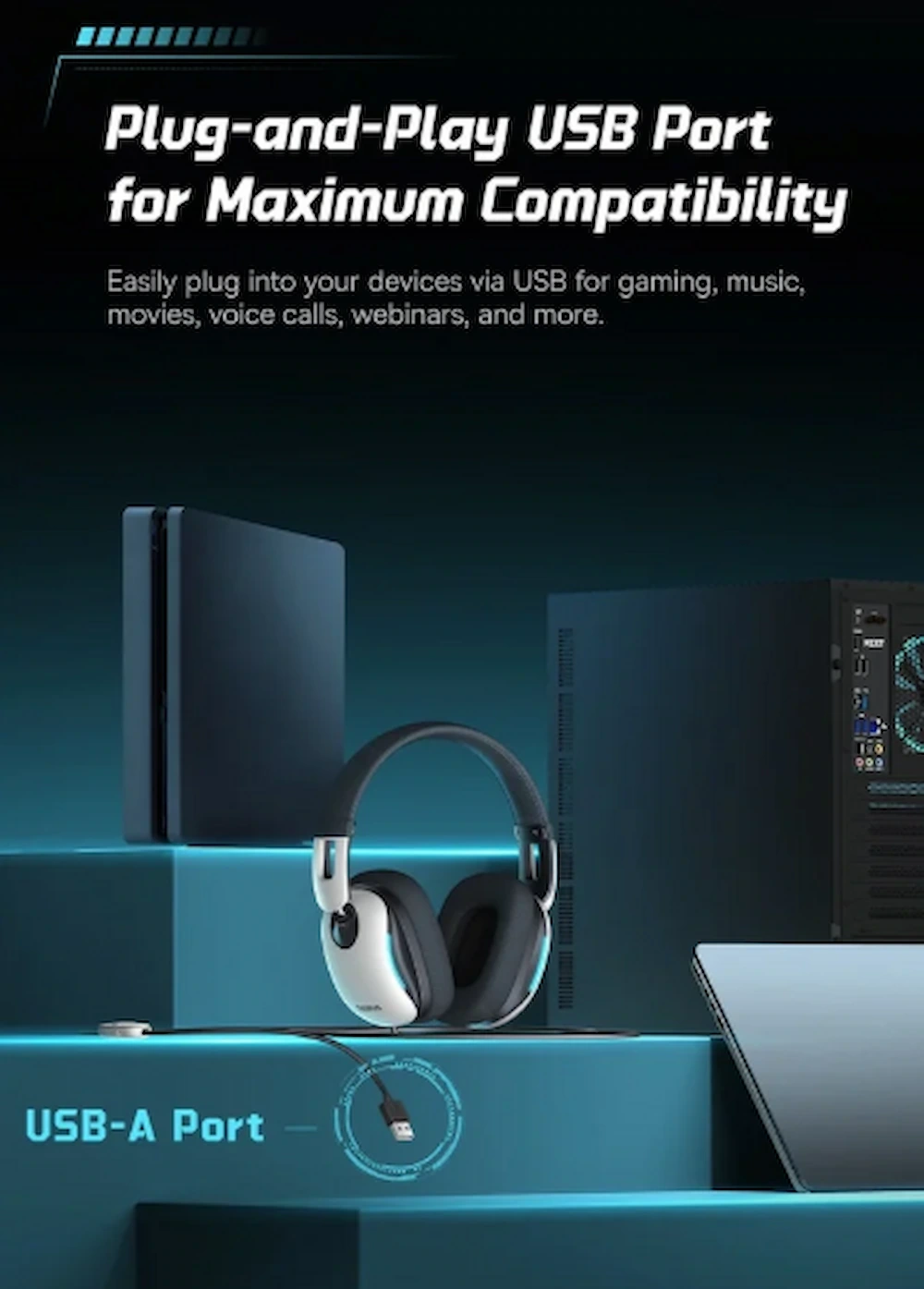 پورت USB-A سازگاری گسترده با PC، لپتاپ و برخی کنسولها ایجاد میکند و فرآیند