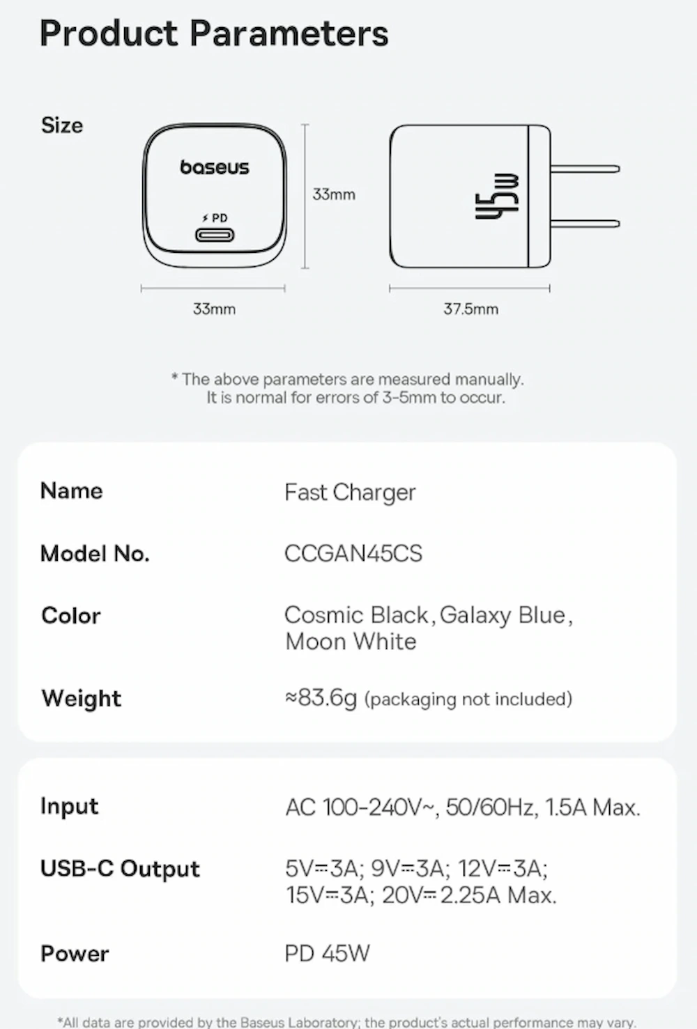 | نام محصول | Baseus PicoGo GaN Fast Charger 1C 45W |