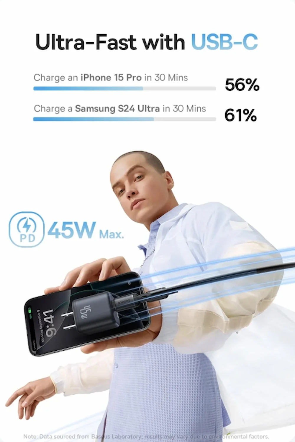 میسازد. توان 45 وات امکان شارژ سریع گوشیها، تبلتها و برخی لپتاپهای سبک