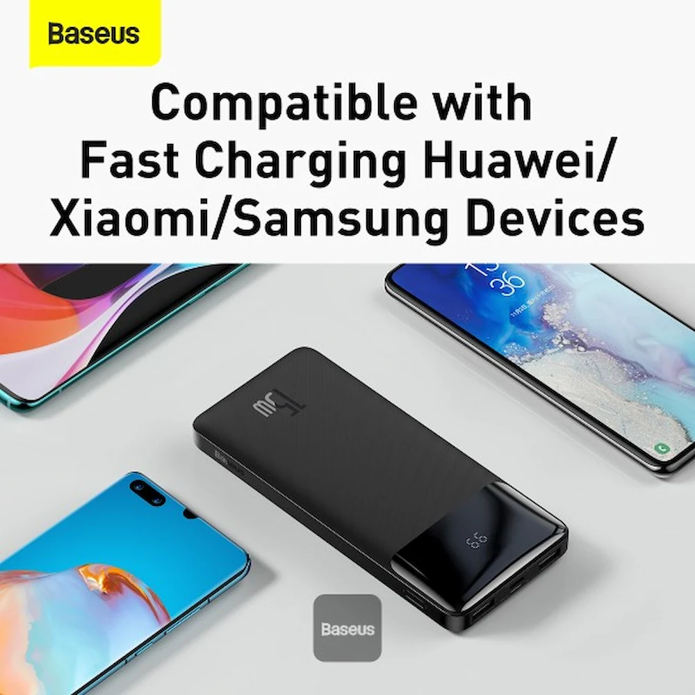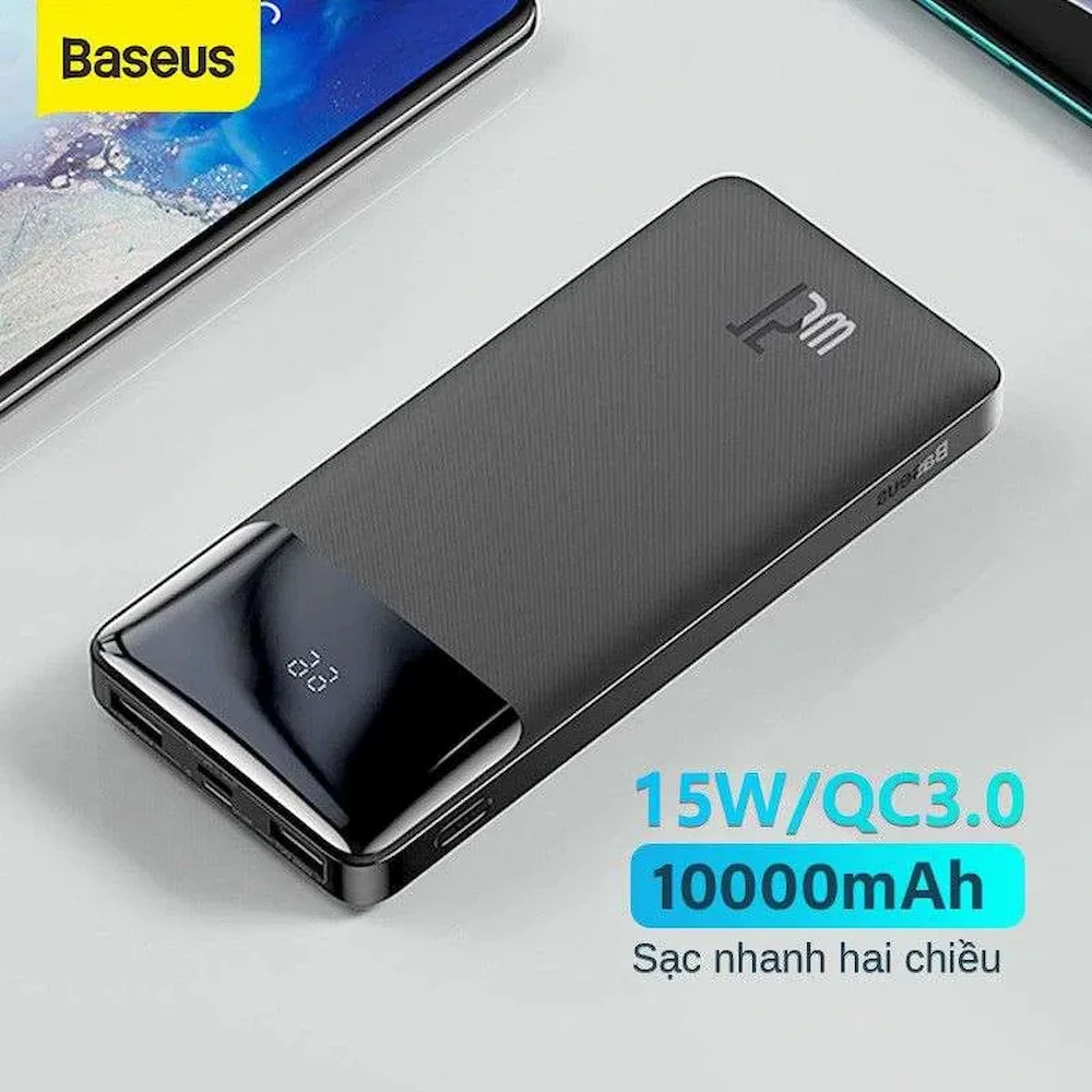 پاوربانک Baseus Bipow Display 15W 10,000mAh یک منبع انرژی کموزن و قدرتمند برای شارژ روزمره گوشی، هدفون و لوازم هوشمند است.