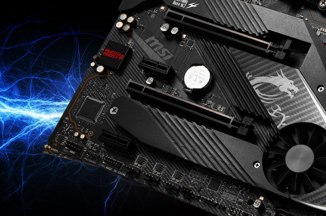 مادربردهای MSI با پشتیبانی از فناوری Lightning GEN 4 PCI-e جدیدترین و سریعترین راه انتقال اطلاعات با سرعت 64 گیگابایت بر ثانیه را برای شما به ارمغان میآورد. این سرعت در مقایسه با نسل قبلی این فناوری حدودا 2 برابر افزایش یافته است. همچنین PCI-e 4.0 از نسخههای قدیمیتر نیز پشتیبانی میکند. پوشش فلزی این اسلات و مدار چاپی درجه 1، خیال شما را از بابت مقاومت در برابر خم شدن و وارد شدن ضربه به کارت گرافیک راحت میکند.