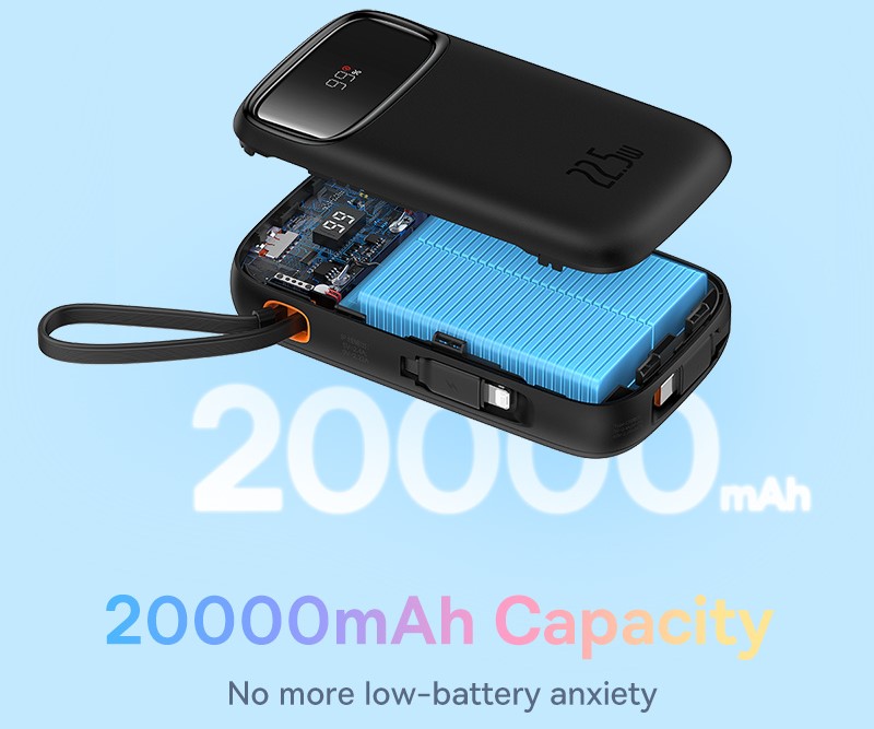 پاوربانک Baseus مدل Qpow2 با ظرفیت ۲۰۰۰۰ میلیآمپر ساعت، توان خروجی ۲۲.۵ وات، دو کابل داخلی (Type-C و Lightning)، نمایشگر دیجیتال و پشتیبانی از شارژ سریع، محصولی کامل و ایدهآل برای کاربران حرفهای و روزمره است. این مدل با رنگ مشکی مات، ساختار فشرده، و همراهی یک کابل Type-C ساده با توان ۳ آمپر و طول ۳۰ سانتیمتر عرضه شده است تا تجربهای بینیاز از کابلهای اضافی برای شما فراهم کند.