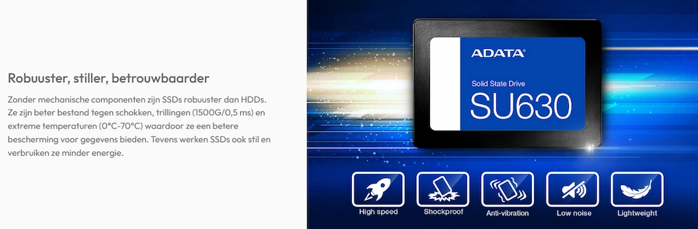 SSD با حذف قطعات مکانیکی در برابر لرزش، ضربه (تا 1500 G)