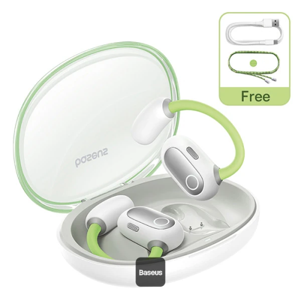 Baseus Eli Sport 1 با طراحی Open‑Ear، درایور بزرگ 16.2 میلی‌متری، پشتیبانی از TWS و حالت گردنی، باتری 30 ساعته و تأخیر 60 میلی‌ثانیه،