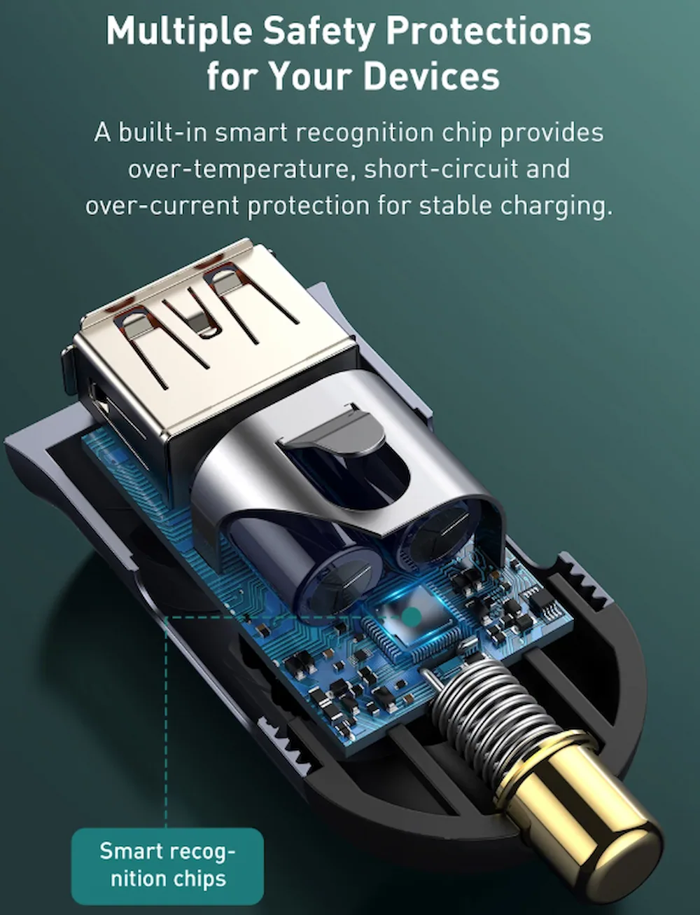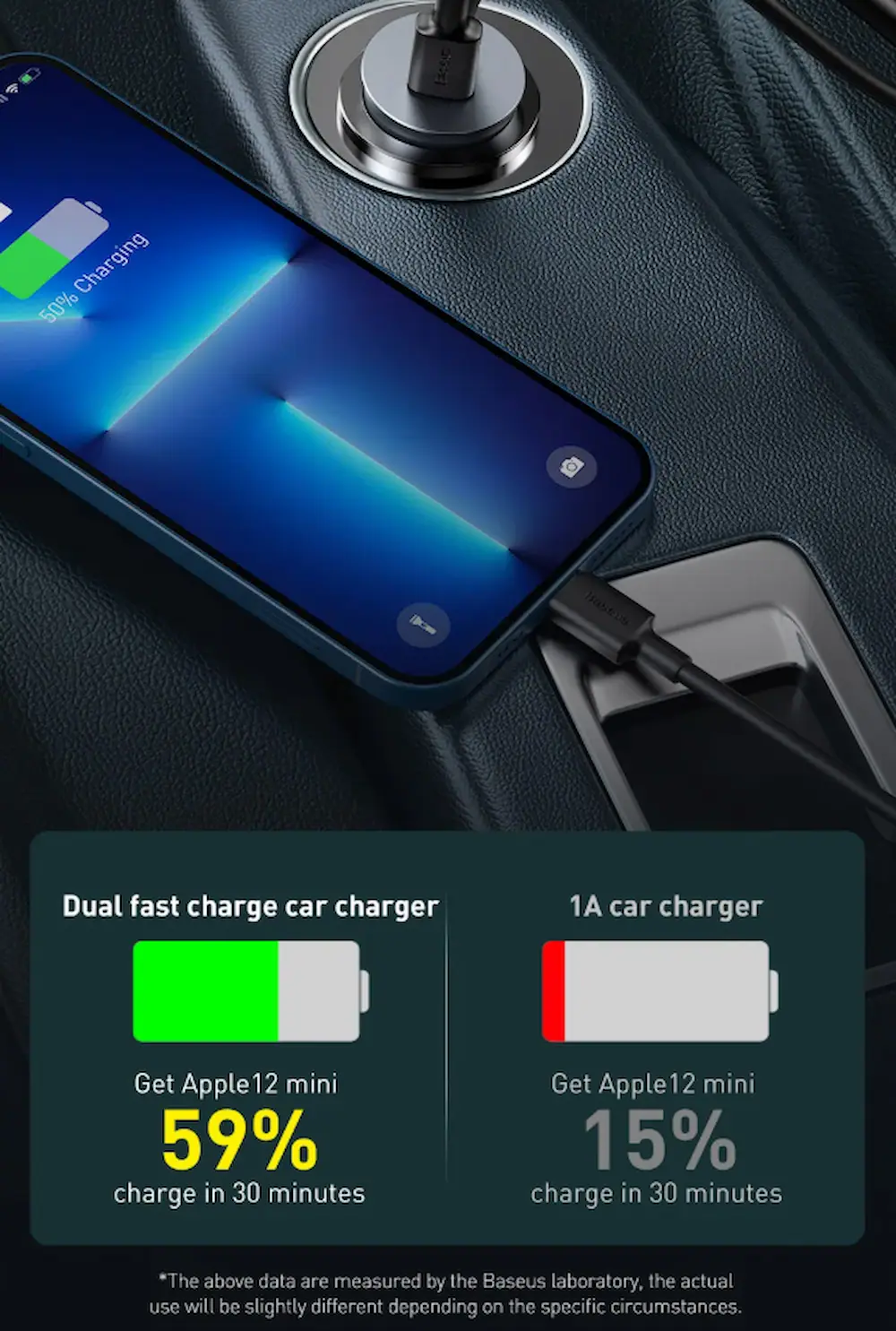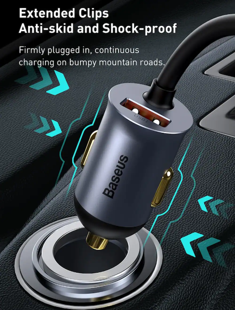 شارژر فندکی Baseus Share Together Multi‑Port 120 W تجربهی شارژ چند دستگاه به شکل کاملاً ایمن و سریع را در خودرو فراهم میکند.