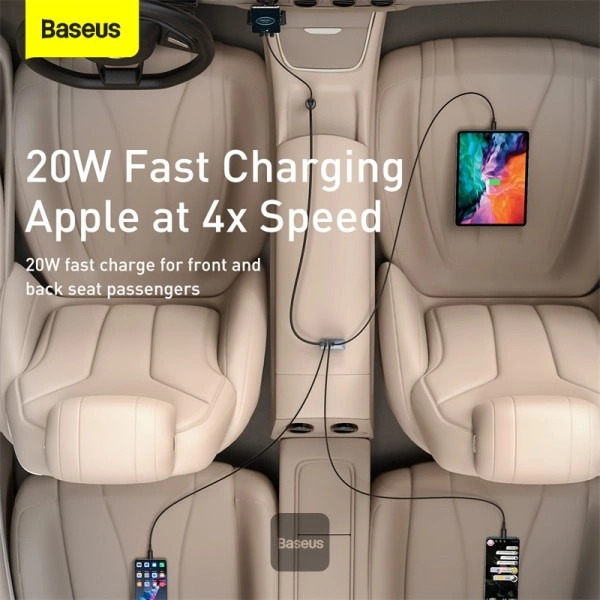 شارژر فندکی Baseus Share Together 120 W (3U + 1C) راهحل حرفهای برای شارژ همزمان چند دستگاه در خودرو است.