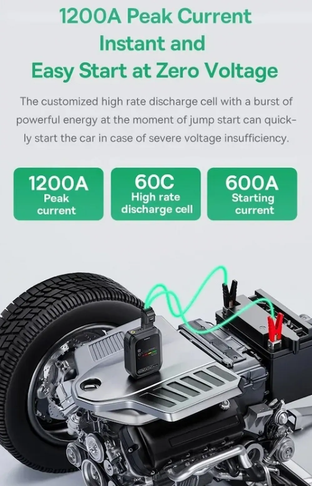 • جریان لحظه‌ای 1200 آمپر برای استارت سریع خودرو حتی در دمای پایین