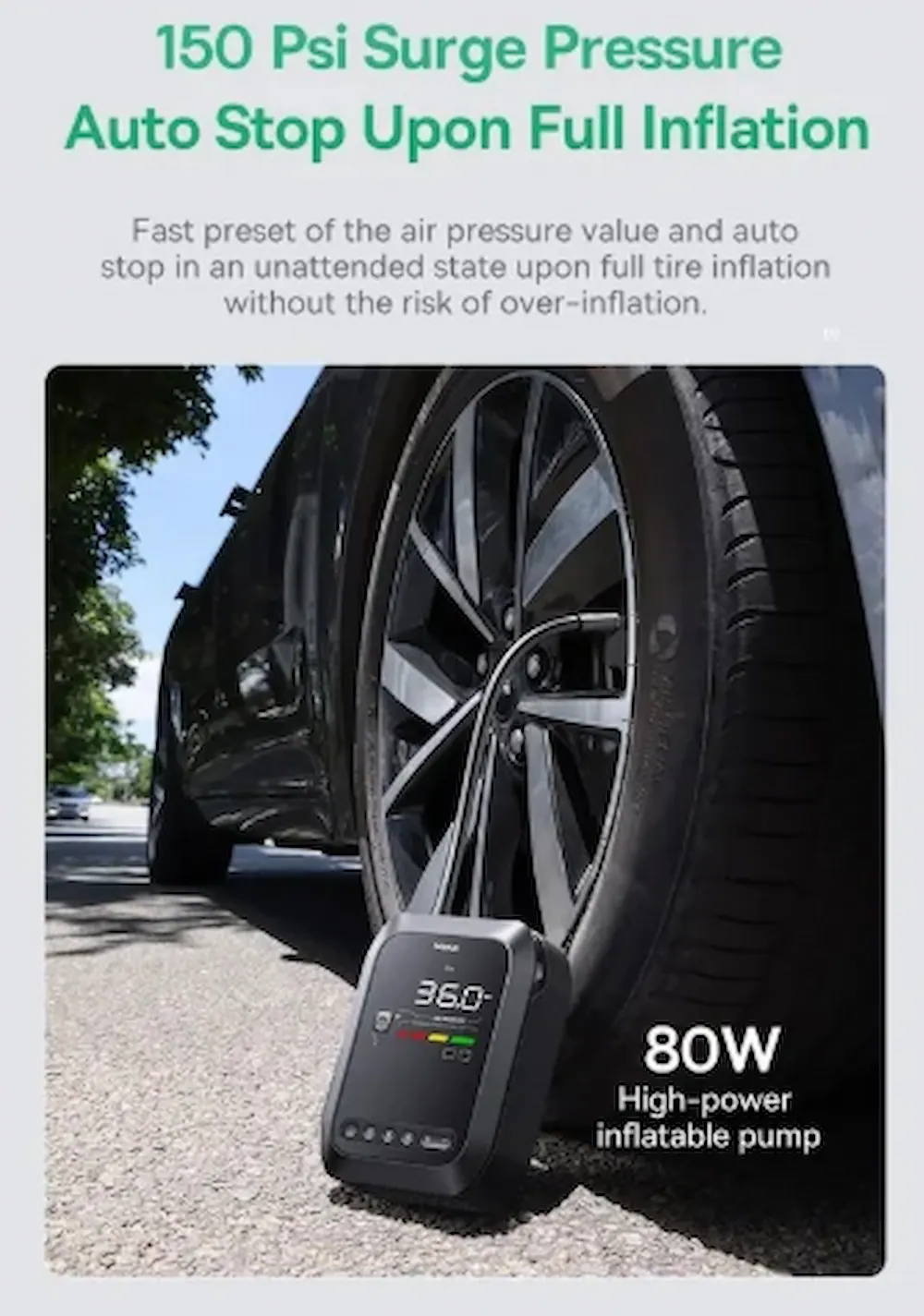 دستگاه با فشار 150 PSI و چهار حالت بادگیری، دمای پایین، خاموشی ناگهانی باتری یا شرایط سفری را پوشش می‌دهد.