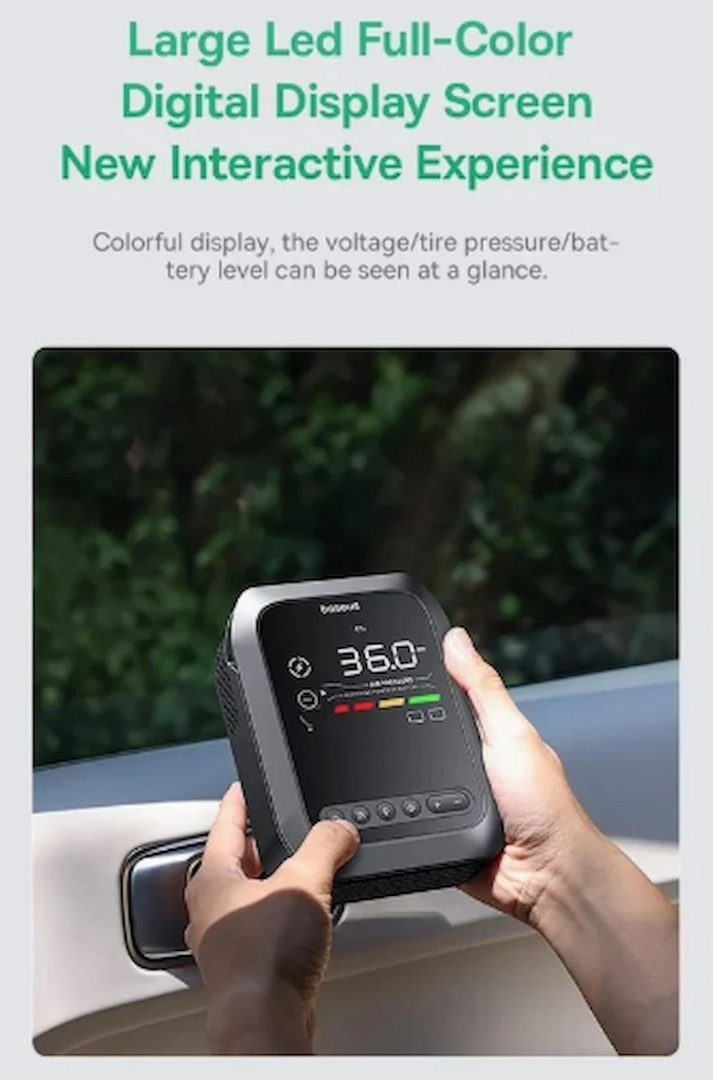 صفحه‌نمایش LED رنگی و درخشان اطلاعات فشار باد، سطح شارژ و وضعیت دمایی