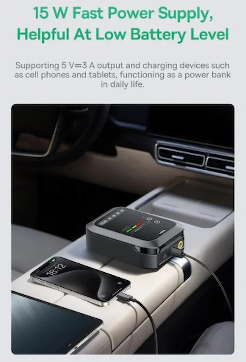 کاربرد اصلی راه‌انداز باتری، پمپ باد، پاوربانک، نور اضطراری