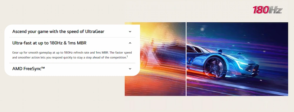 نرخ نوسازی سریع ۱۸۰ Hz در ترکیب با زمان پاسخدهی ۱ میلیثانیه