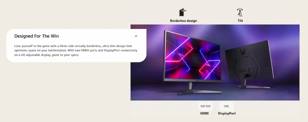 LG 27GS50F‑B با طراحی سهطرف بدون قاب (Three‑Side Virtually Borderl