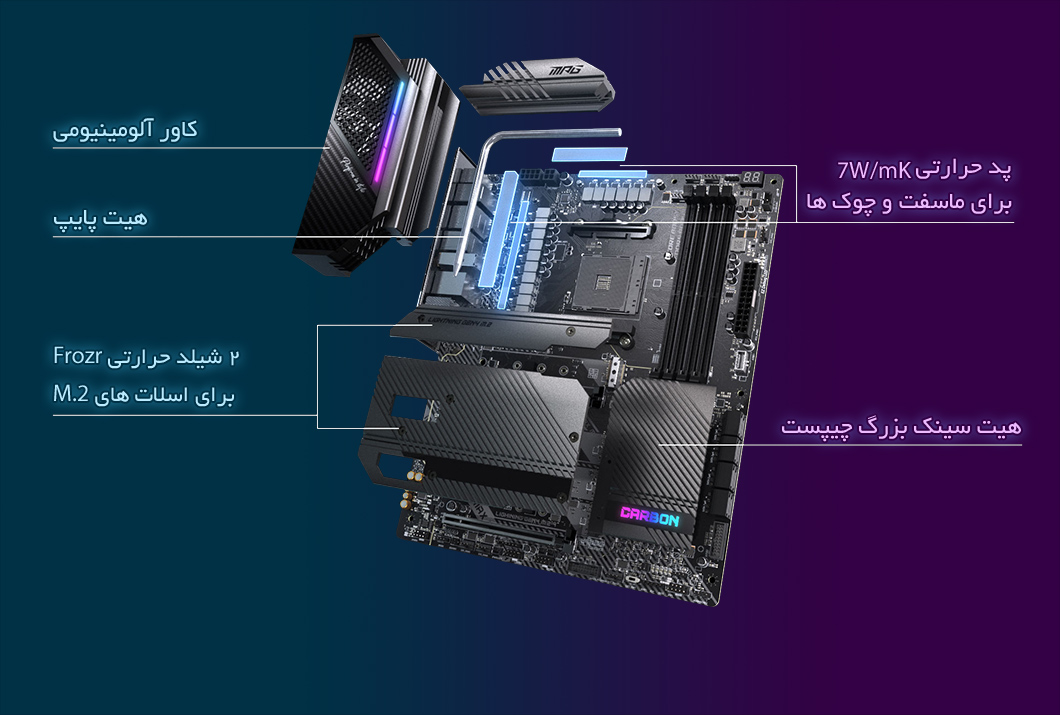 حتی سریعترین SSD های جهان هم هنگام گرم شدن دچار افت عملکرد میشوند. بخشی از طراحی هیت سینک مادربردها، حفاظ حرارتی M.2 است که با جلوگیری از داغ شدن SSD، شما را در دستیابی به بهترین عملکرد آن همراهی میکند.