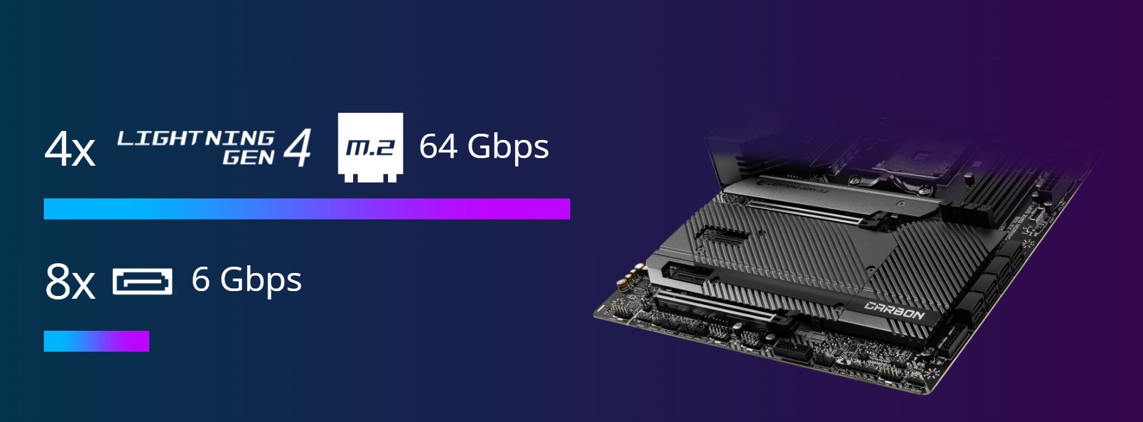 مادربردهای X570S با استفاده از نسل پنجم پردازندههای رایزن شرکت AMD، از آخرین نسخه فناوری Lightning یعنی GEN 4 پشتیبانی میکنند که سریعترین سرعت را در بین حافظههای M.2 در اختیار کاربر قرار میدهد. تا 64 گیگابایت بر ثانیه!
