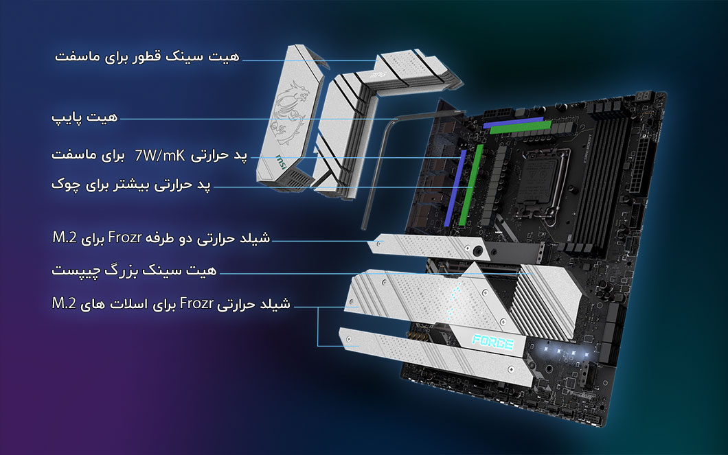 حتی سریعترین SSD های جهان هم هنگام گرم شدن دچار افت عملکرد میشوند. بخشی از طراحی هیت سینک مادربردها، محفاظ حرارتی M.2 است که با جلوگیری از داغ شدن SSD، شما را در دستیابی به بهترین عملکرد آن همراهی میکند.