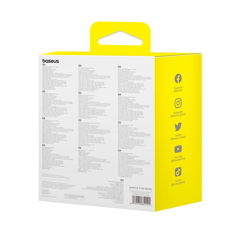 Baseus PowerCombo Cube با طراحی مکعبی و رنگ زیبای Moon White، ظاهری مدرن و هماهنگ با محیطهای اداری و خانگی دارد. ابعاد جمعوجور آن (مناسب برای قرارگیری روی میز یا حتی گوشههای کوچک) باعث شده تا بدون اشغال فضای زیاد، بتوان از حداکثر ظرفیت برقرسانی آن بهرهمند شد. بدنه از مواد مقاوم در برابر حرارت و شعله ساخته شده و در عین حال سبک و قابل حمل است.