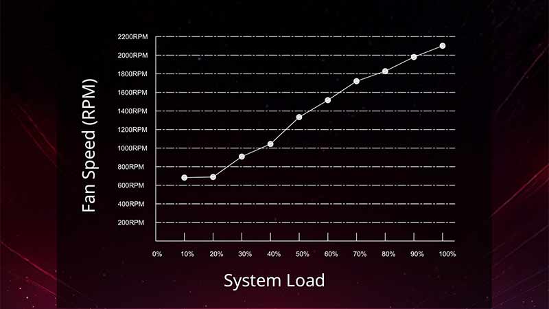 در استفادههای روزمره مانند وبگردی، تماشای ویدئو یا اجرای بازیهای سبک، فنها با دور پایینتری کار میکنند. در این وضعیت، صدای تولیدشده چندان جلب توجه نمیکند و سیستم رفتاری نسبتاً آرام دارد. کنترل PWM باعث میشود سرعت فنها متناسب با دمای پردازنده تغییر کند و در حالت کمبار، نویز به حداقل برسد.